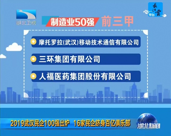 7月29日,2019武汉民营企业100强、武汉民营制造业企业50强排行榜正式发布。hth·华体集团再次入围,荣膺武汉民营企业100强第14位、武汉民营制造业企业50强第3名。
